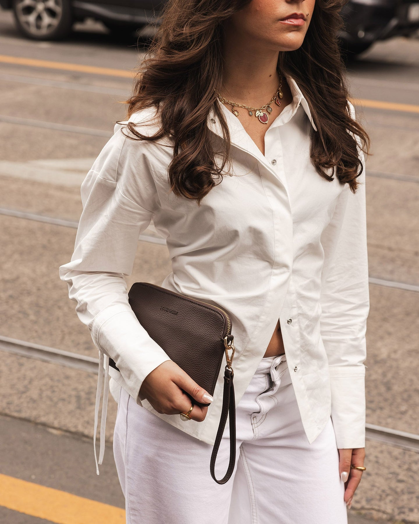 The Poppy Clutch is a timeless essential designed for effortless versatility. Made from buttery soft vegan leather and accented with light gold hardware, her slim silhouette transitions seamlessly from day to night. Keep your must-haves close with an internal zip and slip pocket, while the back pocket offers quick access on the go. Finished with a secure top zip closure and detachable wristlet, Poppy can be styled as a sleek wallet tucked inside your tote or carried on her own as an elegant clutch. Simple, functional, and refined - she’s the piece you’ll reach for season after season.